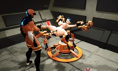 Cyber fuck machine in action! Sexy shemale plays with supah busty doll