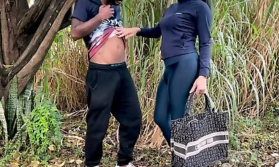 POV Hot Black Trans Sucks a Dick In The Forest